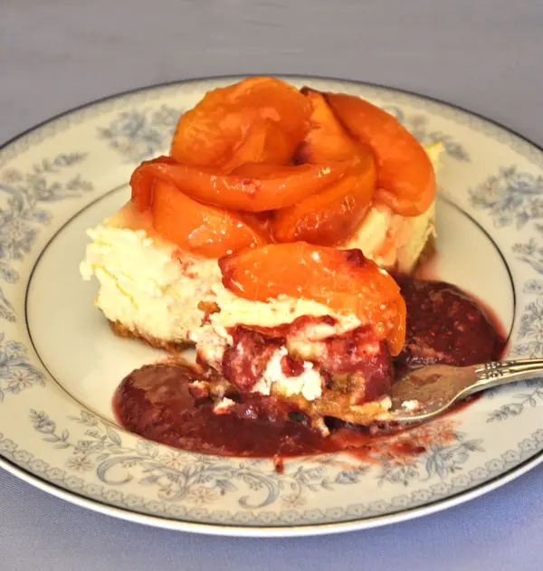 This instant pot peach cobbler cheesecake is the perfect dessert to bring to summer BBQs.