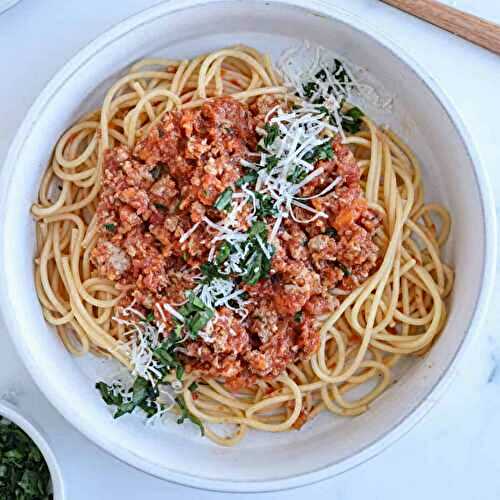 Pork Bolognese, or ground pork pasta sauce recipe, is packed with flavor and is a great alternative to traditional beef-based spaghetti sauces.