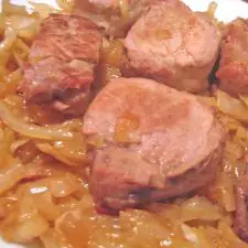 Recipe Pork fillet mignon, red cabbage and chestnut instant pot - Often, the red cabbage is served with chestnut; they go well together.