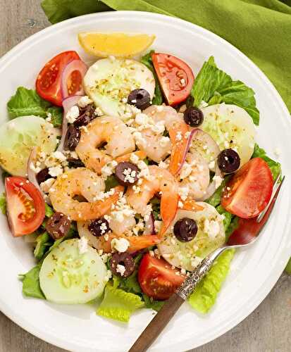 Shrimp Greek salad is easy, delicious, gluten free and mostly do ahead! Super adaptable too, and the perfect summertime meal!