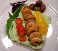 Shrimp on Avocado Cream, on slices of whole grain toast - an open-faced sandwich