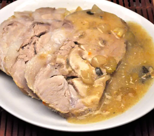 Slow Cooker Pork and Sauerkraut, with onion and carrots.