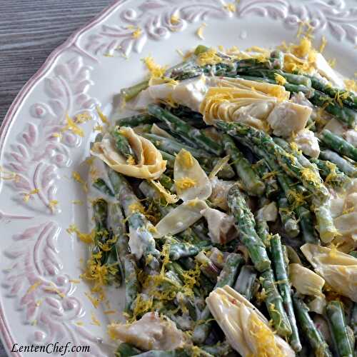 The sweetness of gentle asparagus being followed by the acidity of marinated artichoke that is soothed by the creamy dressing.
