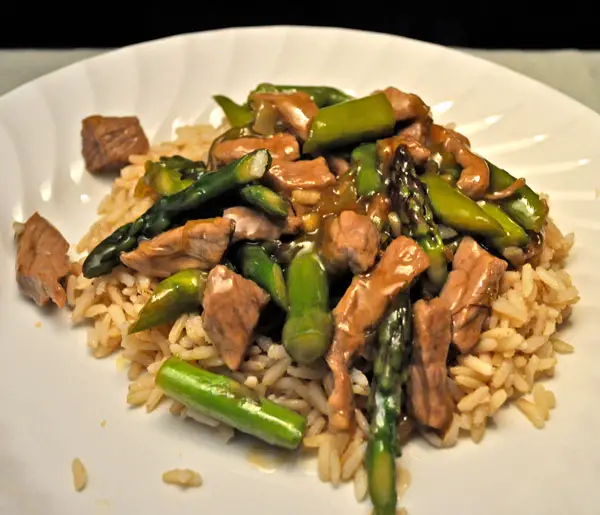 Stir-Fried Ground Beef, Asparagus, Red Pepper and Peas - an easy stir-fry for spring in under 30 minutes.