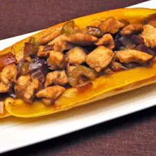 Stir-Fried Turkey with Mushrooms on Spaghetti Squash