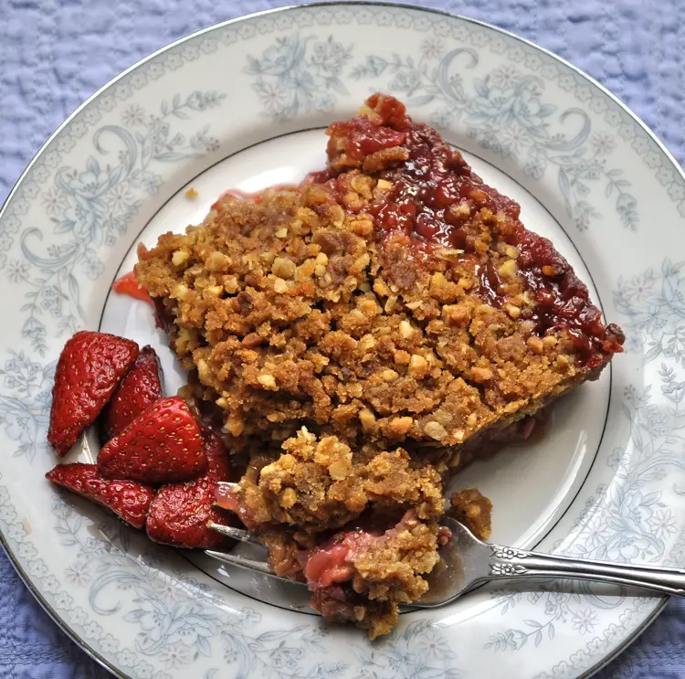 These scrumptious Awesome Strawberry Rhubarb Oatmeal Bars won a Pennsylvania State Fair Butter Cookie Contest and it's no wonder with the mouth-watering sweet and tart flavors of strawberry and rhubarb pie flavor baked in a yummy oatmeal crust.