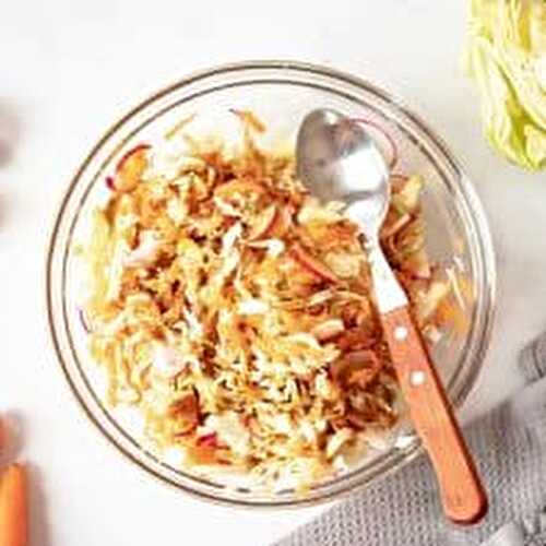 This cabbage salad is naturally gluten-free, rich in vitamin C and K, fiber and folate, it’s highly versatile and it holds up well for a long time.