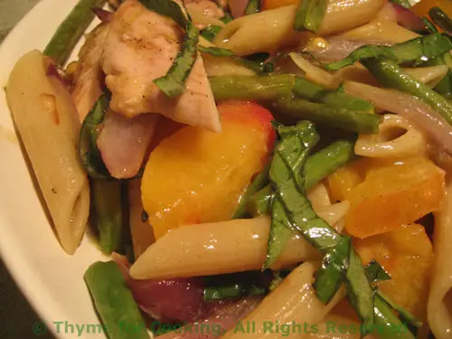 Chicken, Green Bean and Tomato Pasta with Peanut Dressing