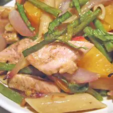 Chicken, Green Bean and Tomato Pasta with Peanut Dressing