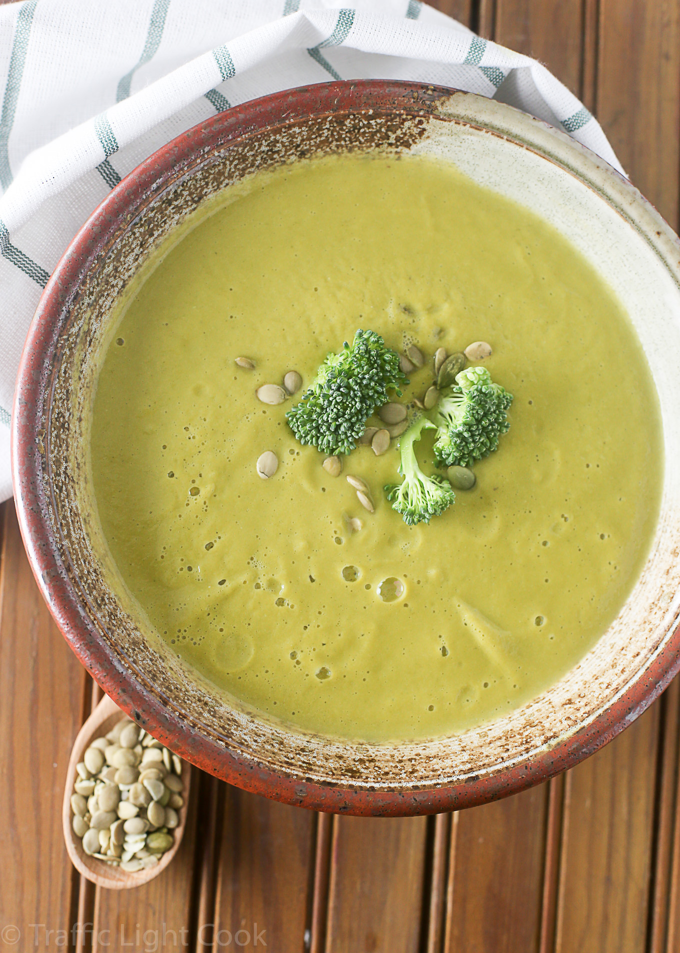 Easy creamy broccoli soup is made healthier with milk instead of heavy cream, and it just takes minutes to make!
