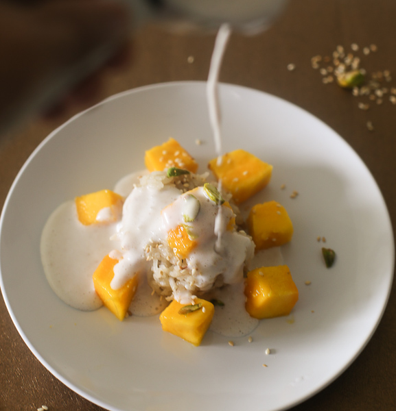 An easy Thai rice pudding made with sticky black rice, coconut milk, and honey.