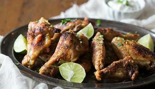 Bone-in chicken thighs seasoned with coriander, ginger, and garlic then baked until crispy.