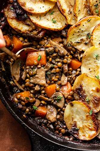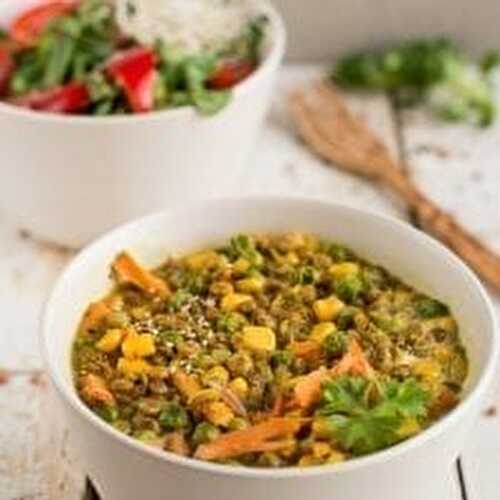 This 1-pot gluten-free vegan stew with brown lentils is a perfectly quick and filling main dish to add to your salad bowls! Lentils and peas make it so hearty and creamy while the corn is there to surprise you with sweetness.