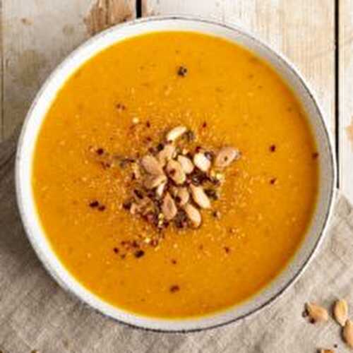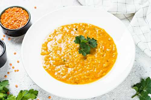 Learn how to make a hearty and healthy pumpkin soup recipe with lentils and sweet potato.