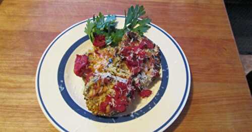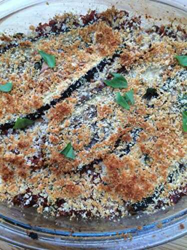 This eggplant gratin recipe combines eggplant slices with a creamy, cheesy sauce as well as a tomato or marinara sauce.