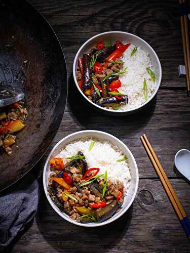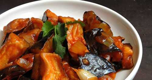 My vegan version of Chinese Eggplant stir-fried with TVP( aka Fish Fragrant Eggplant, a popular eggplant dish around the globe.