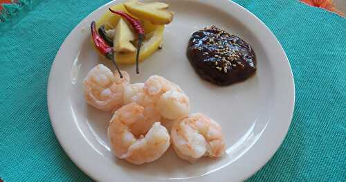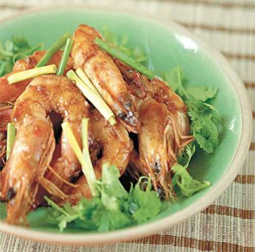 Shrimp infused with fresh ginger and red pepper flakes served with a dipping sauce.
