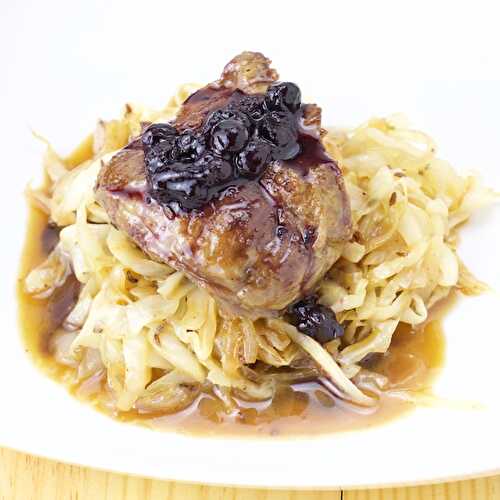 Blueberry pork cheek on a vinegar braised cabbage bed is such a long title for such a simple dish.