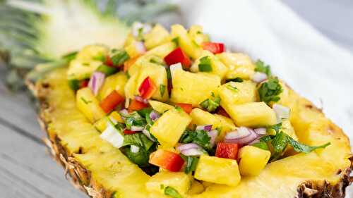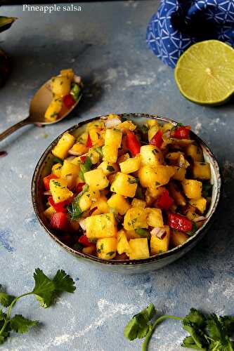 This fresh pineapple salsa is an incredibly easy and refreshing recipe with the perfect combination of sweet and spicy flavors! It's loaded with fresh pineapple, red bell pepper, jalapeno, cilantro, red onion, and lime juice! Serve it with some tortilla.