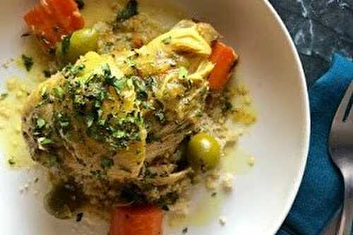 Stir-fry with a Greek flavor: Chicken with Chickpeas and Preserved Lemon, on Orzo with feta and Greek olives