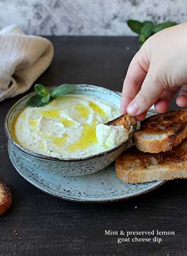 I love dips of all sorts! And because I still had some preserved lemons in my fridge, I thought it might taste good with goat cheese and mint in a dip.