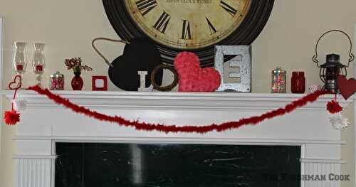 A decorated Valentine's Day Mantel! Red and white with a touch of pink!