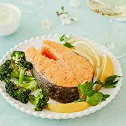 Roasted Salmon Steaks with a lemon-butter sauce are super quick and easy to prepare, and super delicious, too.