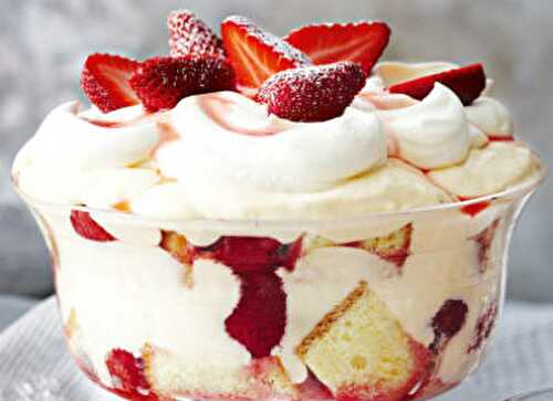This easy white chocolate cream and strawberry trifle is served in individual glasses but the recipe can also be used to fill a traditional trifle bowl.