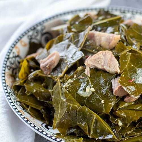 This easy recipe for collard greens with ham hocks is a wonderful option if you're looking for a savory Southern side dish! Collard greens are a soul food staple that can be served at any meal from Sunday dinner to backyard BBQs.