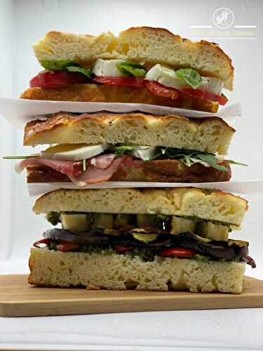 These elaborate sandwiches are a good way to use up excess day-old gluten-free focaccia bread by adding one of the suggested fillings and toasting them in a panini, griddle pan or oven.