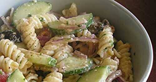 A greek salad turned into a pasta is a great, easy and healthy meal to make this summer.