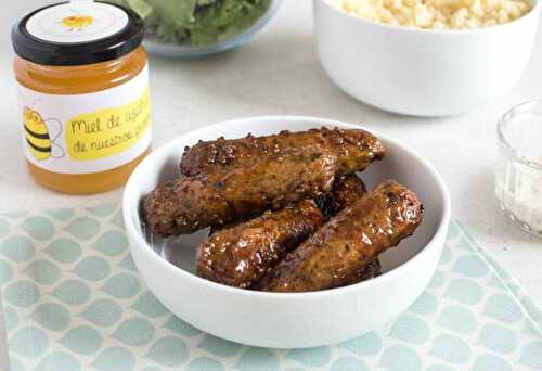 Honey and mustard sticky sausages - these glazed vegetarian sausages are so full of flavour! A seriously easy way to take your sausages up a notch.