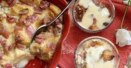 Rhubarb bread pudding with orange custard is a tried and true recipe that is incredibly tasty and not too sweet.