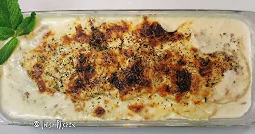 The mesmerizing Creamy Chicken Potato Gratin is a French Pie recipe made with Boneless Chicken, potato strips, cheese and creamy white homemade sauce.