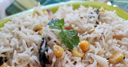 Pudina Pulao is a mint flavored rice cooked with loads of mint leaves and whole spices.
