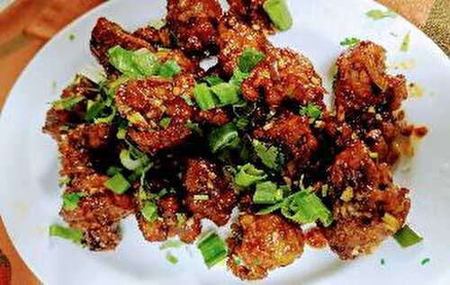 Gobi Manchurian is a Indo Chinese fusion recipe where cauliflower florets are deep fried and seasoned with Manchurian sauce.