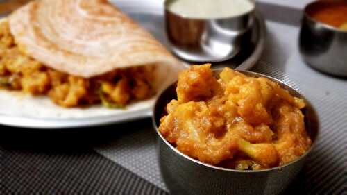 Gobi Masala Dosa - Dosa is prepared with regular masala dosa batter and has a delicate spicy cauliflower filling.