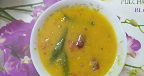Simple and quick South Indian style Dal Tadka / paruppu kadaiyal recipe for rice and roti.