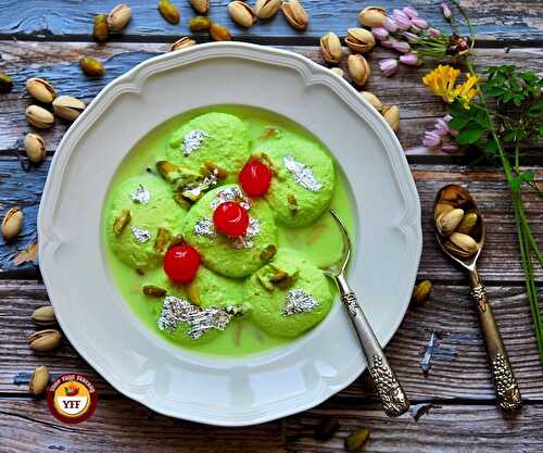 Goodness of Ras malai and Pistachio combined together yields this delicious Pistachio Rasmalai