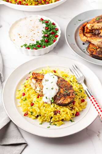 This amazing Middle Eastern Saffron Rice with Baked Salmon is easy to make in 30 minutes.