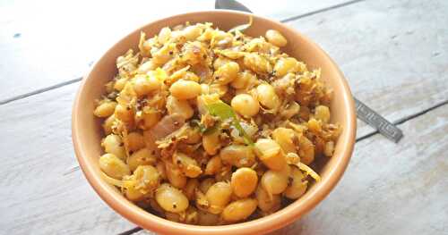 Chunky, hot and spicy curry coconut gravy with yellow split peas and TVP (soya chunks).