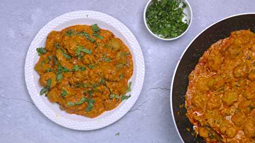 Delicous soya chaap curry made in the creamy sauce of butter, fresh cream and tomatoes.