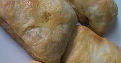 Puff pastry pockets with fish filling 500gr puff pastry dough, 800 gr fish filet, 1 hard boiled egg, 1 medium size white onion, 2 tablespo.