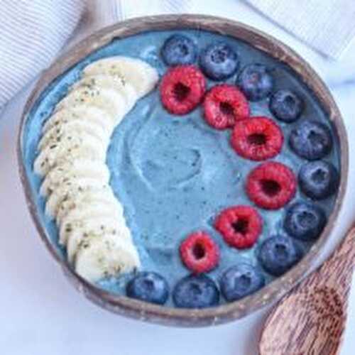 This Blue Spirulina Smoothie Bowl is packed with nutrients from fruit, veggies, nut butter and spirulina.