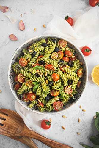 Not only are carrots delicious and nutritious, but their greens are also edible! If you have some carrot greens kicking around, put them to good use in this cold pasta salad recipe.