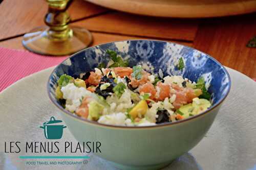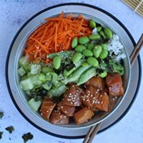 Summer in a bowl with this delicious poke bowl filled with salmon drowned in a homemade teriyaki sauce and fresh mango.