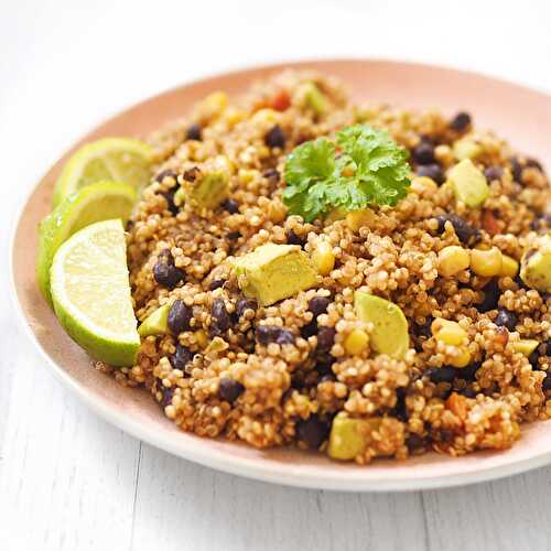 This healthy Mexican quinoa salad recipe makes a delicious summer bbq side dish or a high fiber and high protein meal that's perfect for meal prep!