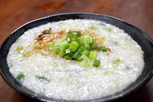 A one-pot meal porridge in a Chinese style where rice is slow cooked and then combined with all the Chinese flavors.