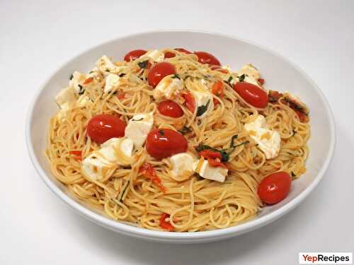 Capellini pasta tossed with fresh mozzarella, grape tomatoes, basil, shallot, and garlic.