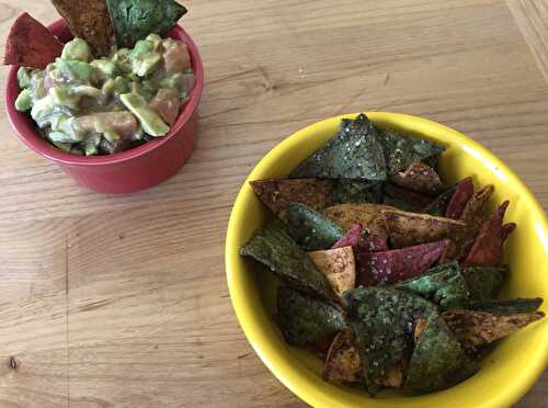 Oven baked tortilla chips served with a chipotle pepper guacamole.